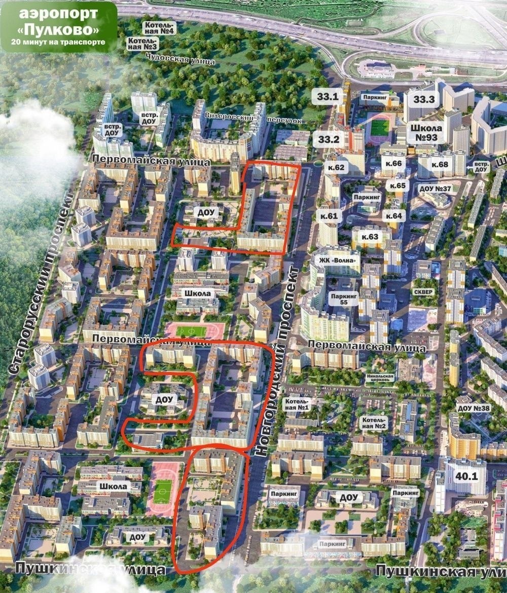 Два лота принадлежат компании «Агропром», которая аффилирована с застройщиком «Дальпитерстрой». Третий участок, расположенный между улицами Школьной и Окуловской, занимают торговые павильоны и платные стоянки. Его собственником является закрытый паевой инвестиционный фонд «Троицкий».