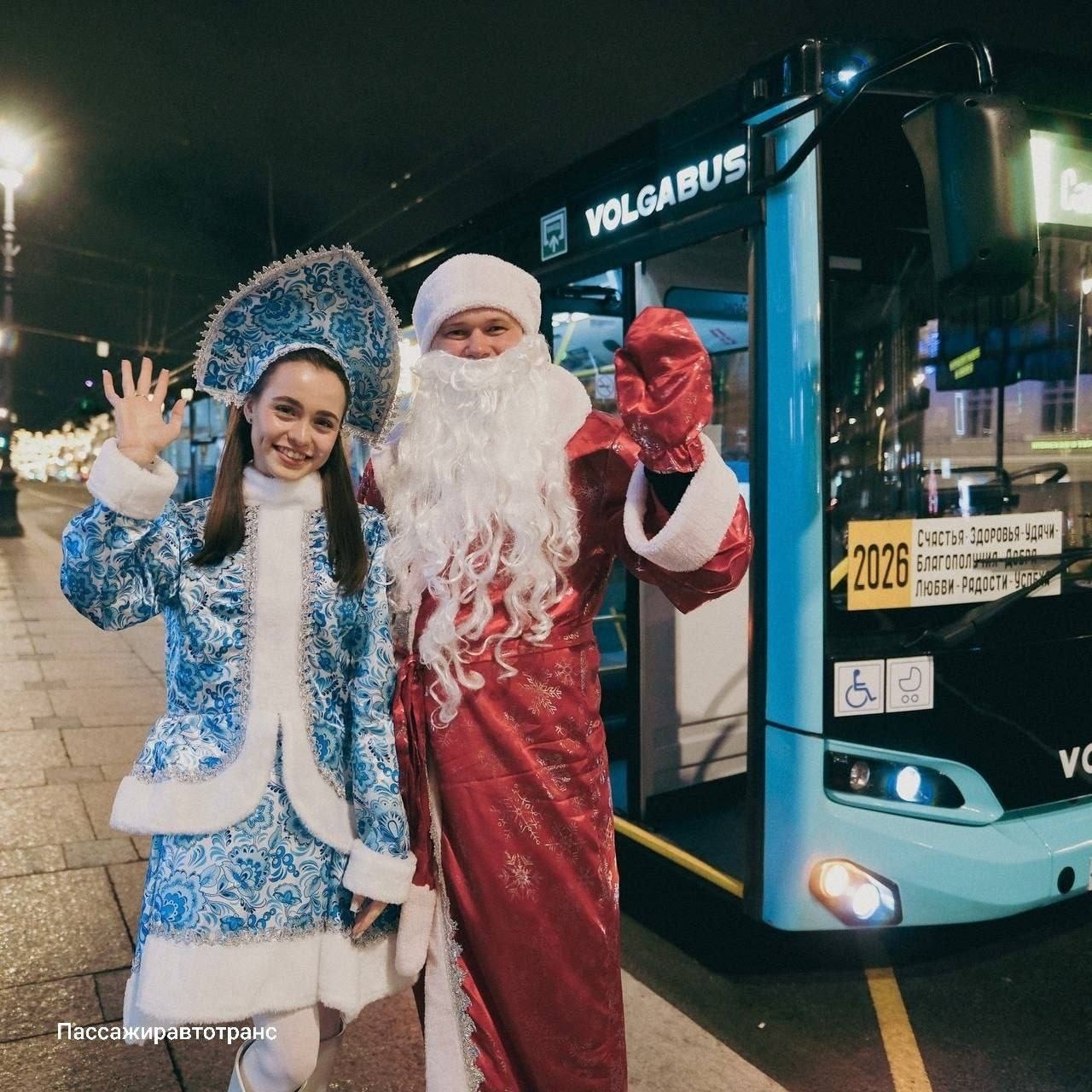 В городе стартовала акция «Везёт в Новый год»: до 11 января водители и кондукторы 14 маршрутов работают в образах Деда Мороза и Снегурочки. Автобусы украсили праздничными маршрутоуказателями с новогодними пожеланиями для пассажиров.